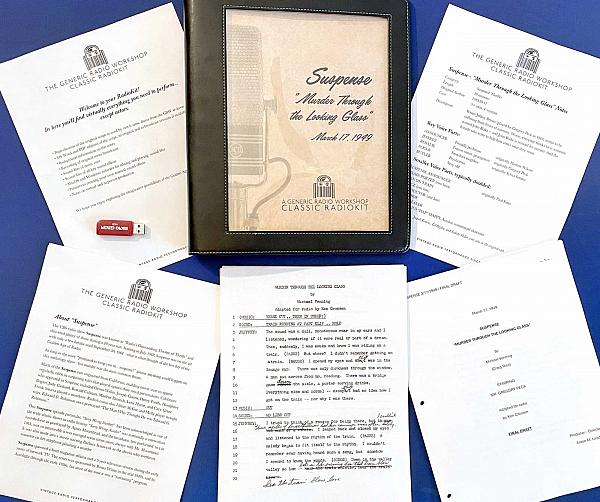 Each Radiokit is shipped to you with all the materials you need to produce a 30 minute or 60 minute recreation of a classic radio show from the Golden Age of Radio. We've gone back to the actual original scripts from the archives of the Generic Radio Workshop, never made available to the public, added all the music, sound effects, and advice you need to get started, enclosed in a sturdy leatherette 3-ring director's binder.